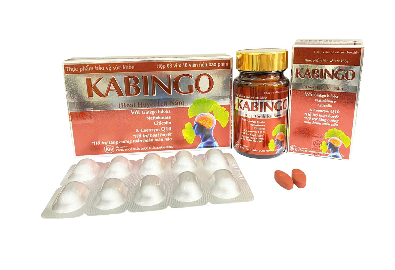 • KABINGO là thực phẩm bảo vệ sức khỏe, được kết hợp từ những thành phần thiên nhiên như cao bạch quả, đinh lăng, thông đất, thành ngạnh… cùng các hoạt chất hiện đại như Citicolin, Coenzyme Q10, Melatonin, Vitamin B6, Rutin, Nattokinase.